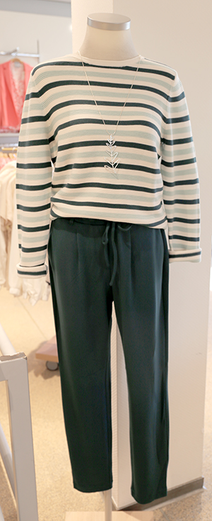 Meist wird der leicht antailierte Blazer, der größtenteils aus Jersey ist, zur farblich abgestimmten Joggpants in Karotten -oder -Culottform