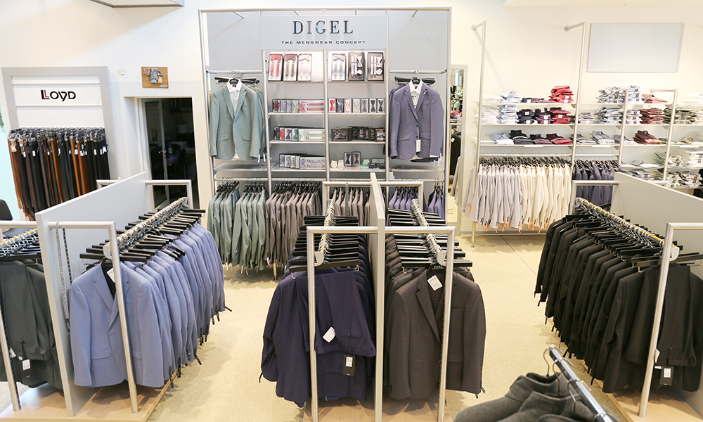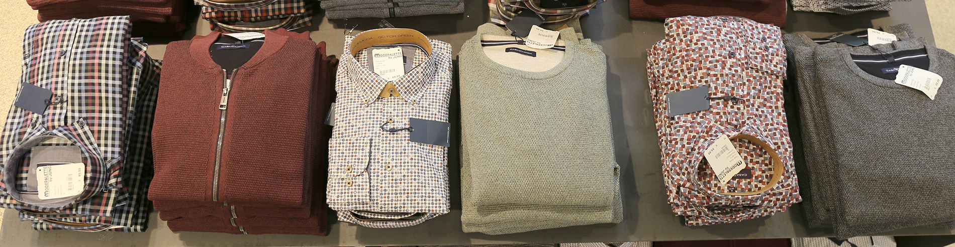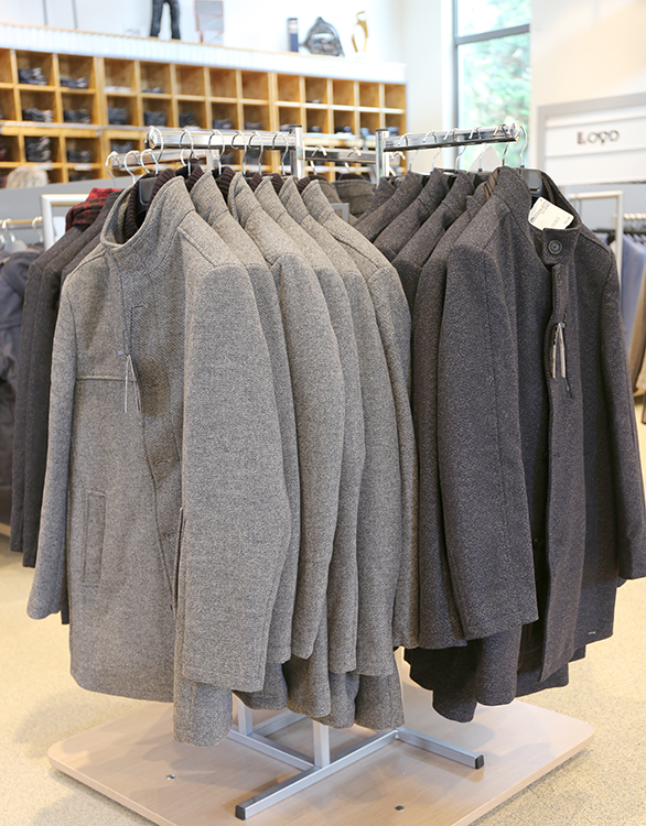 In unserer Herrenabteilung finden Sie alles, was Ihr Herz begehrt: Anzüge, Sakkos, Jacken, Hosen, Westen, Hemden, Pullover, Shirts
