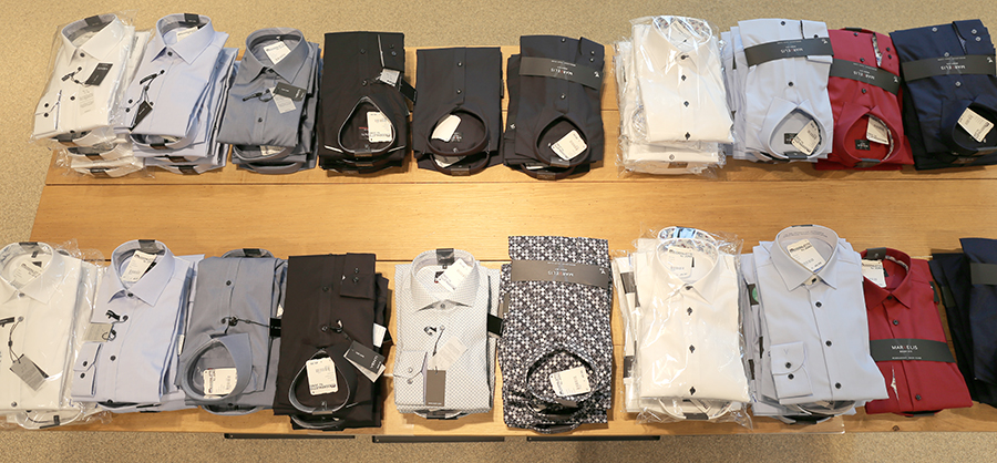 und viele Accessoires wie Krawatten, Schleifen, Gürtel, Schals, Socken und Anzugsschuhe.